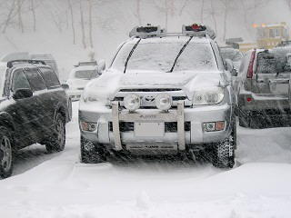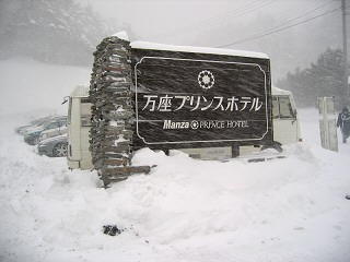 集合場所の「万座プリンスホテル」は猛吹雪の中でした。