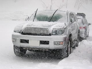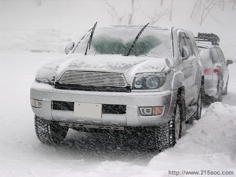 早朝の吹雪の中でじっと我慢の takayu@0013 サーフ。