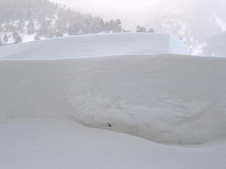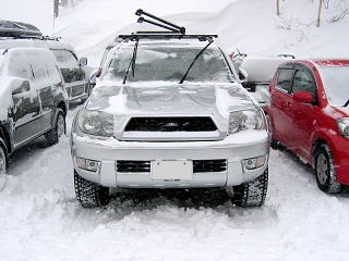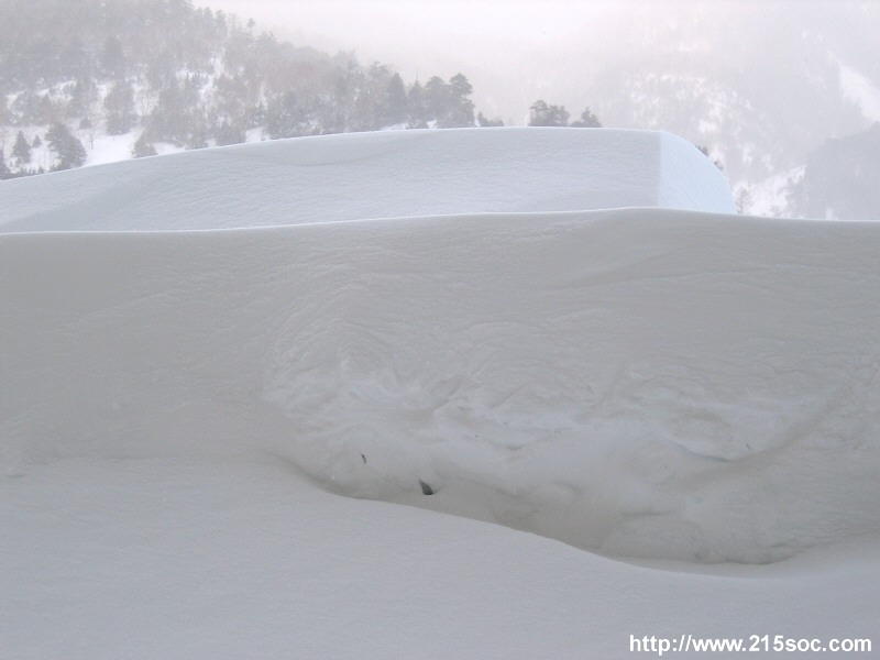 1日目の吹雪の雪はサラサラ雪の為に全て吹き飛ばされてサーフにはほとんど積もっていません。