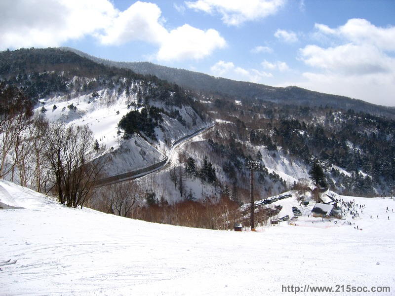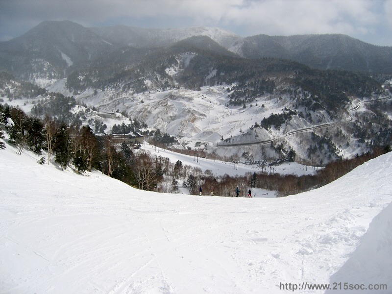 プリンスゲレンデ上部から万座ハイウェーを望む。