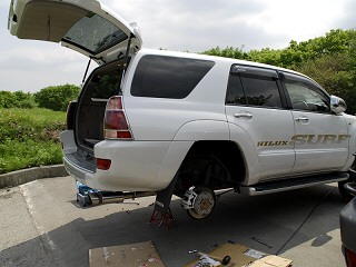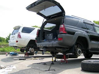 ロアーコントロールアームの塗装病が感染した2名がオフ会で塗装を強行?した様子を!!