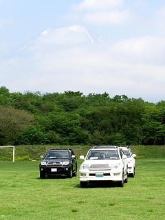 チョットだけ顔を出した富士山と、今回参加した3匹のワンコを紹介。