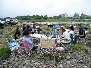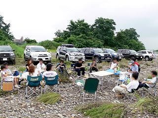 メンバーの皆さんでサーフを観察中。 天気がイマイチでしたが、自然の中でマッタリと....