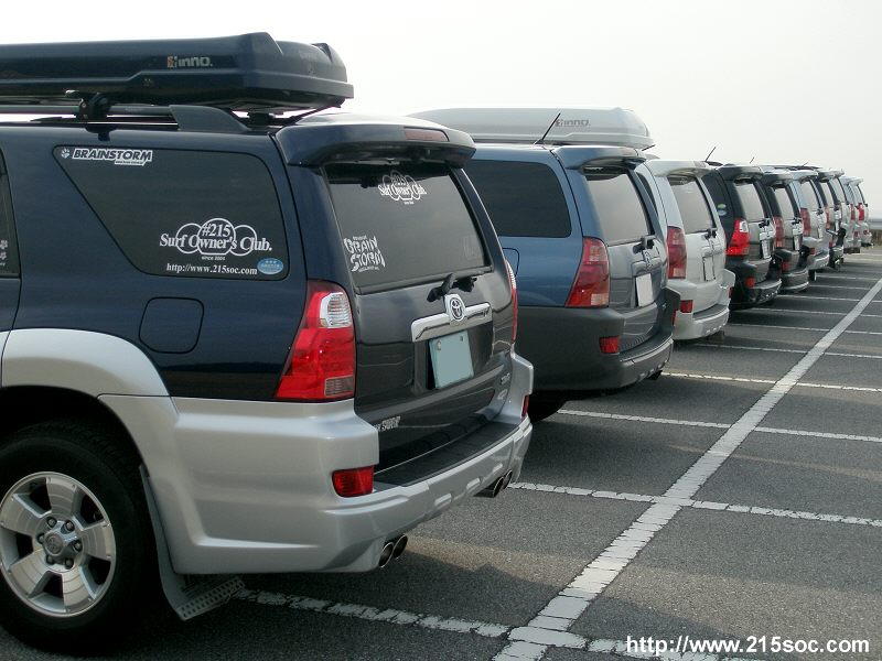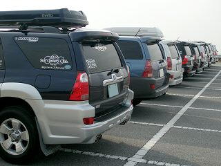 10台のサーフのお尻。 駐車場は貸し切り状態。