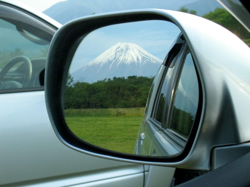 フト見るとサイドミラーに富士山が! 思わずパチリ!