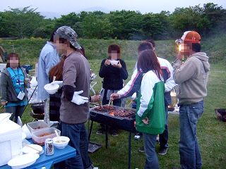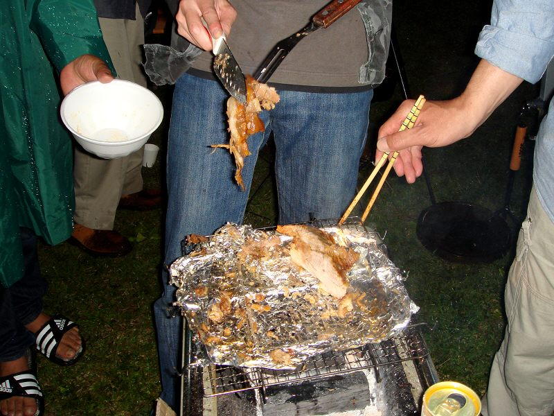 ワイワイ! ガヤガヤ! とBBQ中...