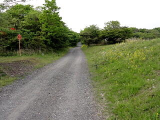 チョット走ると、この看板とゲートが見えるので、このゲートを入って右側に進みます。