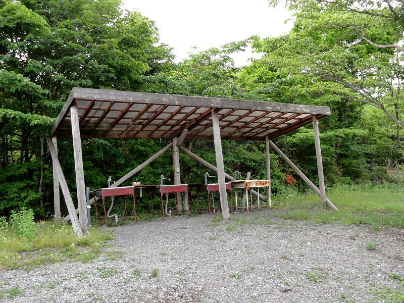 チョット走ると、右側にこの水場(水道・流し台)があります。