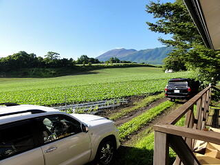 別荘前の様子。 広大なキャベツ畑と浅間山