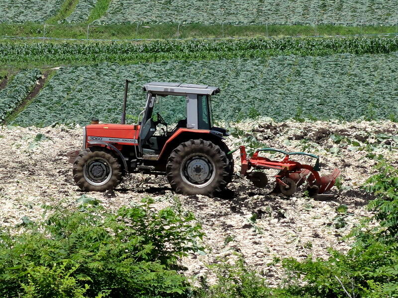 キャベツ畑の脇に放置車両が数台...って感じかな?
