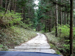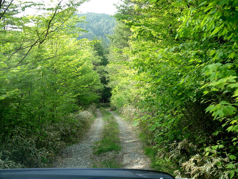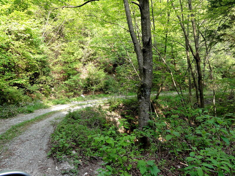 新緑の中を進みます。 写真では良く分かりませんが、路面を横切る溝が所々にあって気を付けないとかなりの衝撃が!