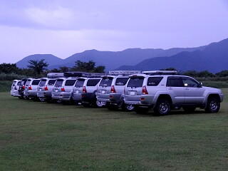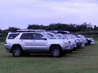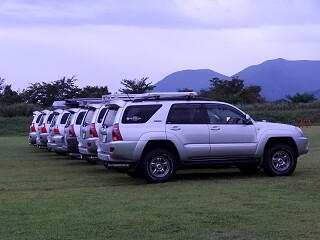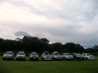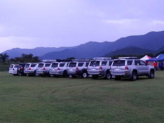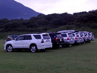 初日(30日)の夕方に富士山が顔を出したので慌ててサーフを整列させ、富士山をバックにしての撮影会となりました。