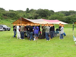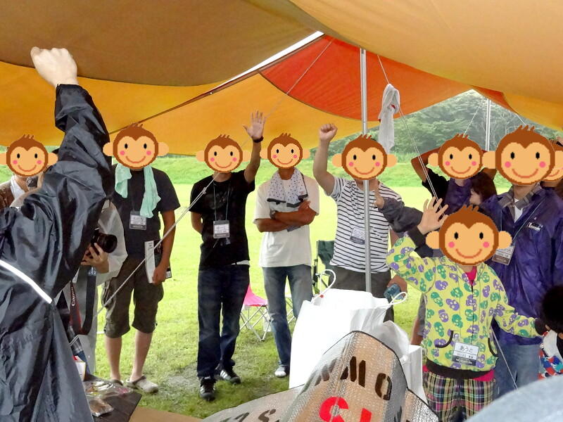 今にも雨が降りそうだったので、念のためにタープの中での開催となりました。