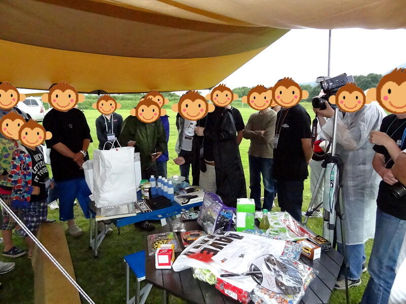 始まる前に出品された景品の品定め中の図。