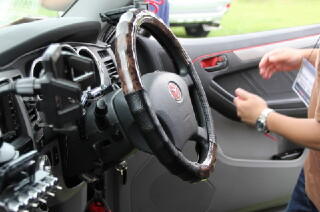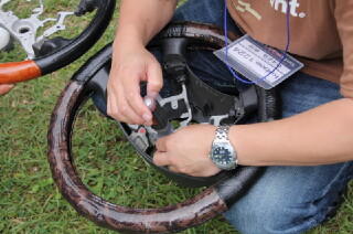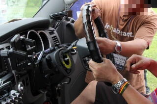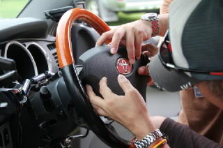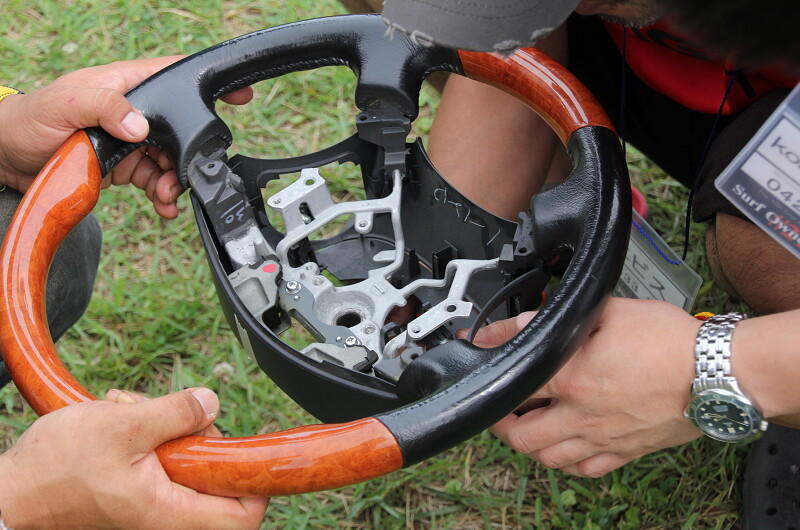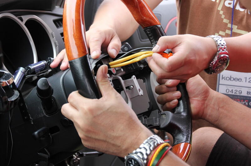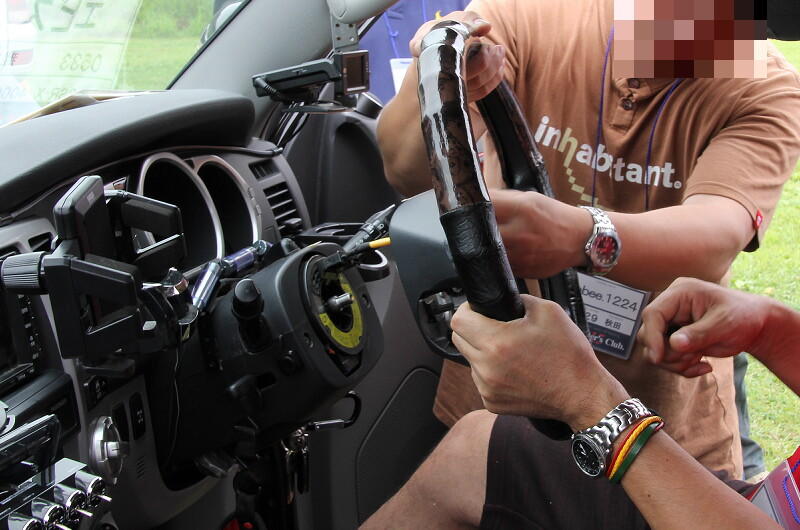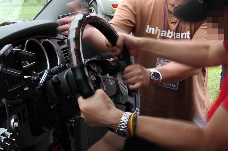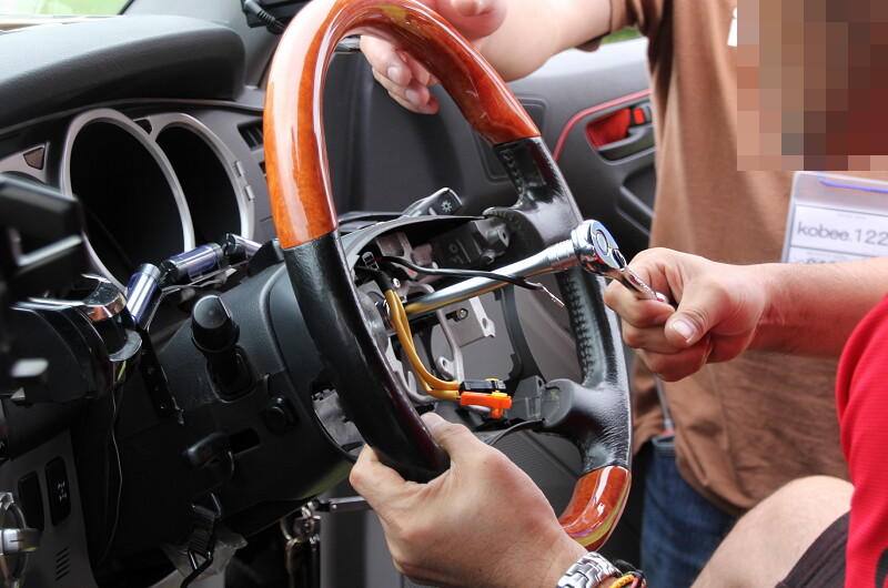 「エビス@0533」さんがじゃんけん大会でゲットしたステアリングホイールの取り付けの様子です。