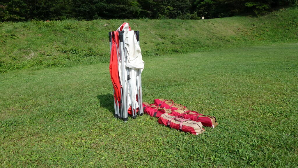 ひとりでこのテントを組み立てるのは結構至難の業!