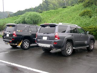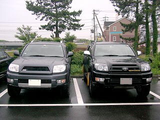 右のkimuさんサーフはタイヤが 265/70 R17 なので車高が少々アップ!