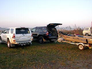 朝焼けの利根川河川敷にオセロサーフ集合!